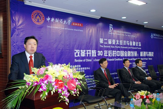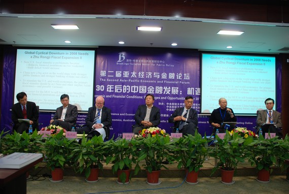 11 月 9 日,由太阳成官网、清华-布鲁金斯公共政策研究中心、澳大利亚蒙纳士大学商学院联合主办的“第二届亚太经济与金融论坛”在中财大厦 2 层学术报告厅隆重举行。本届论坛的主题是“改革开放 30 年后的中国金融发展:机遇与挑战”,具体议题包括:“金融改革开放 30 年:历史回顾和经验启示”、“当前的宏观经济金融形势与政策选择”和“全球金融危机及其对中国的影响”。