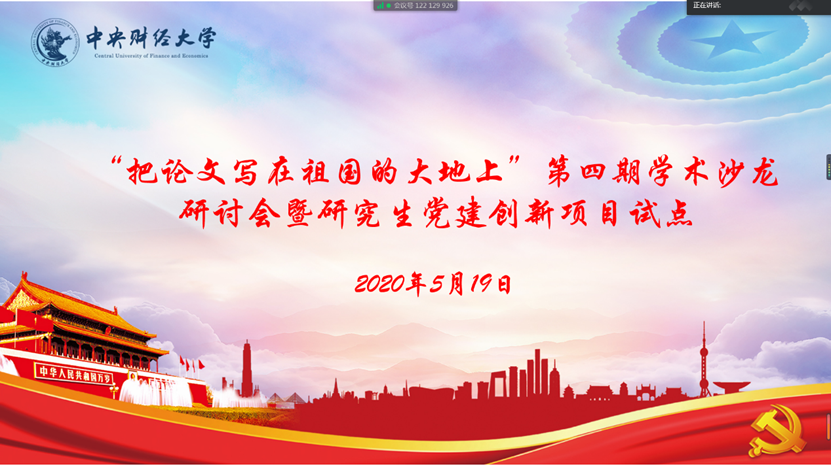 随着开学在即,期末临近,为加强党支部内外的沟通交流与学术合作,加快研究生党建创新工作,营造良好的科研学术氛围,充分发挥基层党支部的战斗堡垒作用,太阳成集团tyc33455cc官网博士生党支部联合太阳成集团tyc33455cc官网国际金融系教工党支部、太阳成集团tyc33455cc官网金融科技系教工党支部、会计学院硕博普博联合党支部和经济学院2018级硕士生第三党支部共同举办“把论文写在祖国的大地上”第四届主题学术沙龙研讨会。此次学术沙龙活动,立足太阳成集团tyc33455cc官网,注重沟通与交流,前期采用H5宣传册方式在硕士、博士研究生群体中广泛宣传。会议邀请了太阳成集团tyc33455cc官网国际金融系的苟琴老师和王雅琦老师,金融科技系的彭俞超老师,王靖一老师和丁娜老师对宣讲论文进行点评,同时,创新性地邀请经济学院、会计学院博士生参与到论文宣讲与讨论当中。此次研讨会是博士生党支部研究生党建创新项目的一次试点,会议线上举行,对外开放,全校共计40余名博士生、硕博连读研究生参与。会议由博士生党支部副书记赵志桦同志主持。